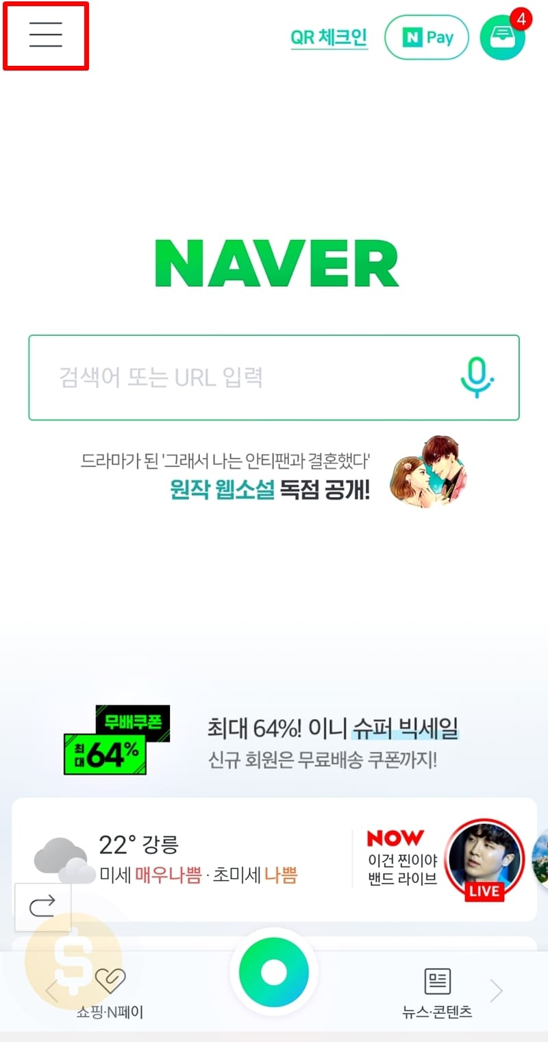 1. 네이버 어플리케이션 앱을 실행합니다.