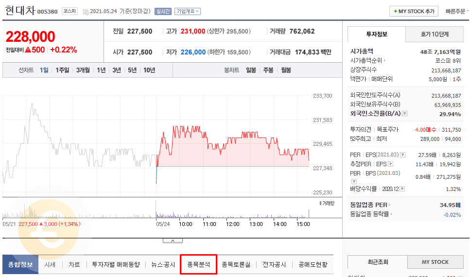3. 우측의 투자정보에서 전체 상장주식수를 확인할 수 있습니다.