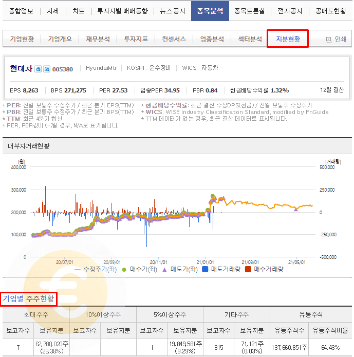 ※ 자세한 주주현황을 보고 싶을 땐 종목분석 > 지분현황 > 기업별 주주현황을 참고하시면 됩니다.